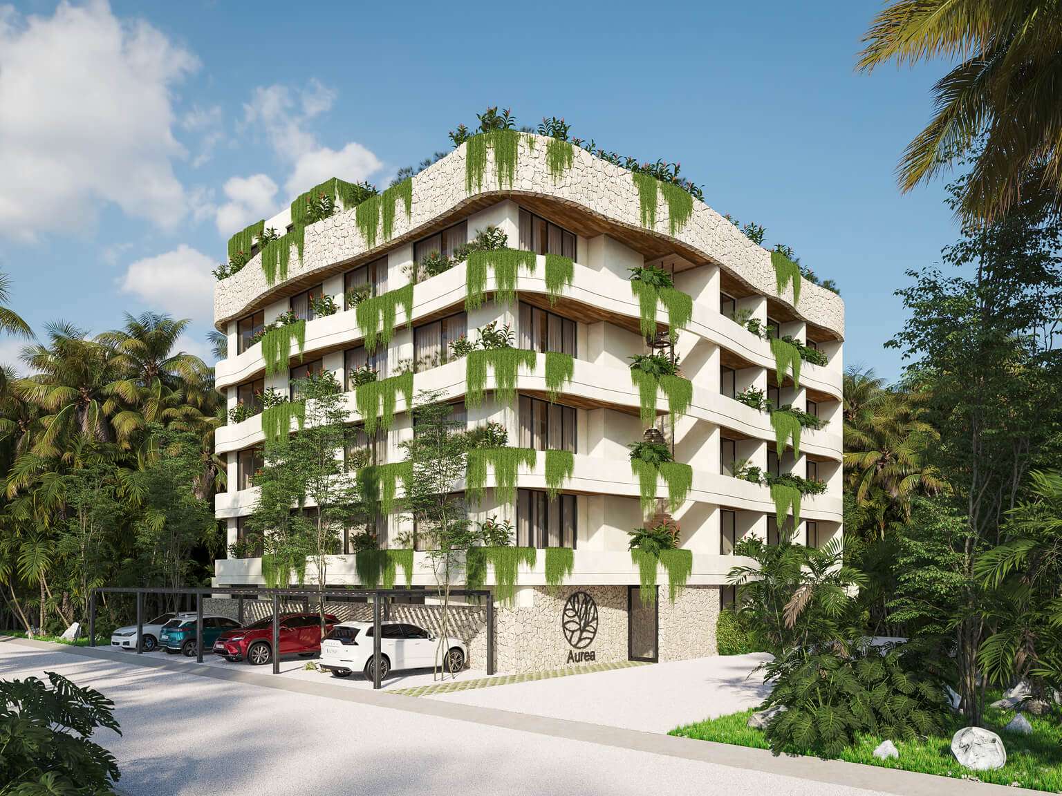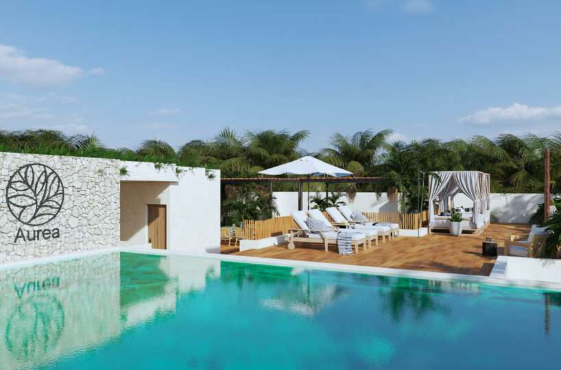 Aurea es un desarrollo residencial boutique ubicado en una de las zonas de mayor crecimiento de Tulum. Ofrece departamentos de 1 y 2 recámaras con alberca privada y terrazas, en un diseño que integra materiales locales y distribuciones abiertas conectadas con la naturaleza.