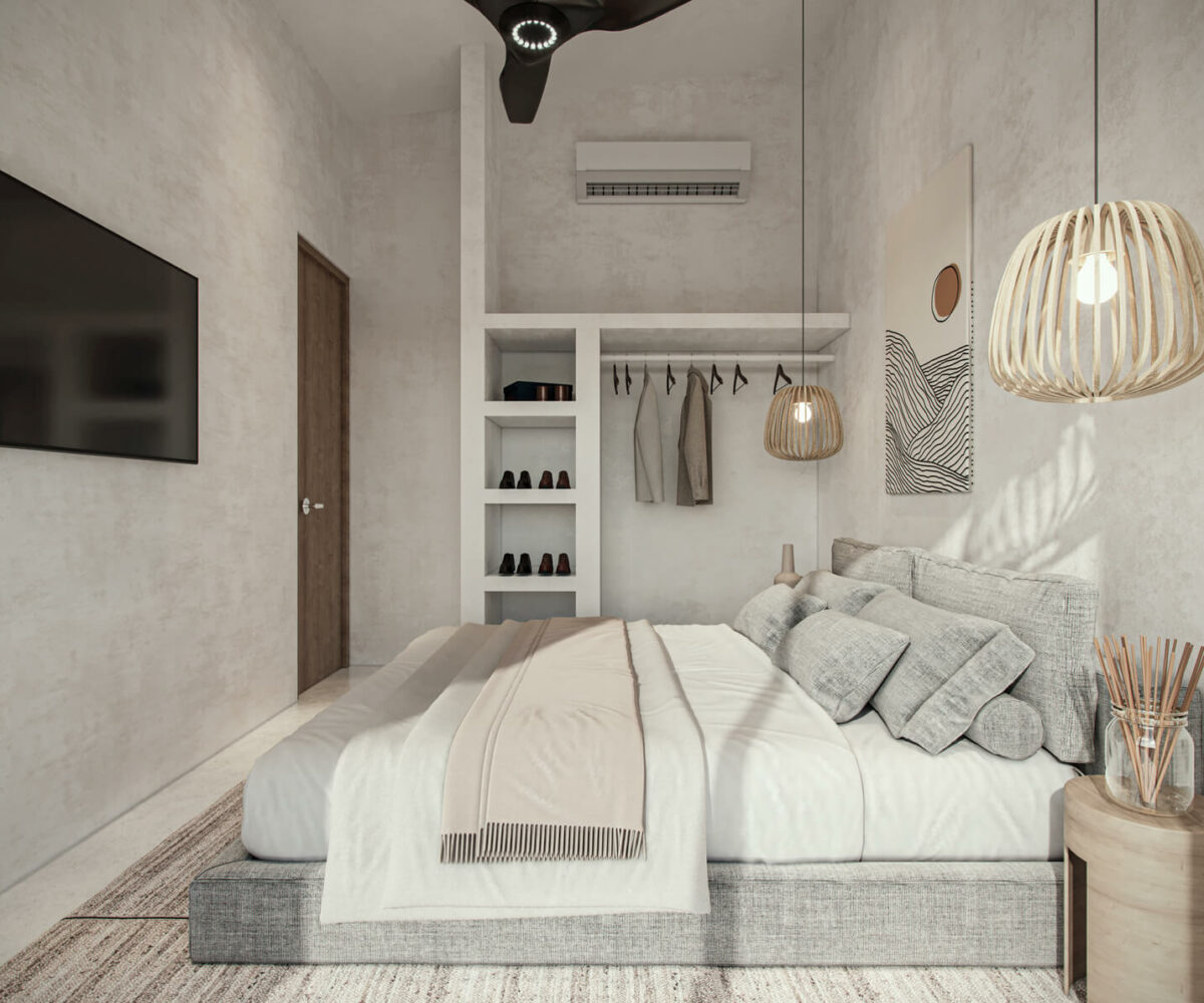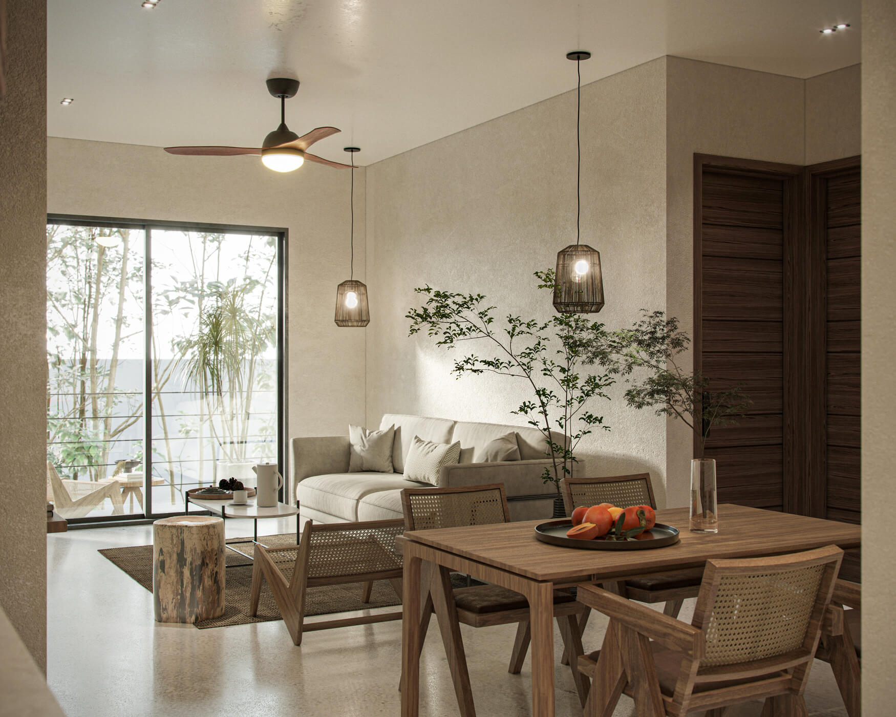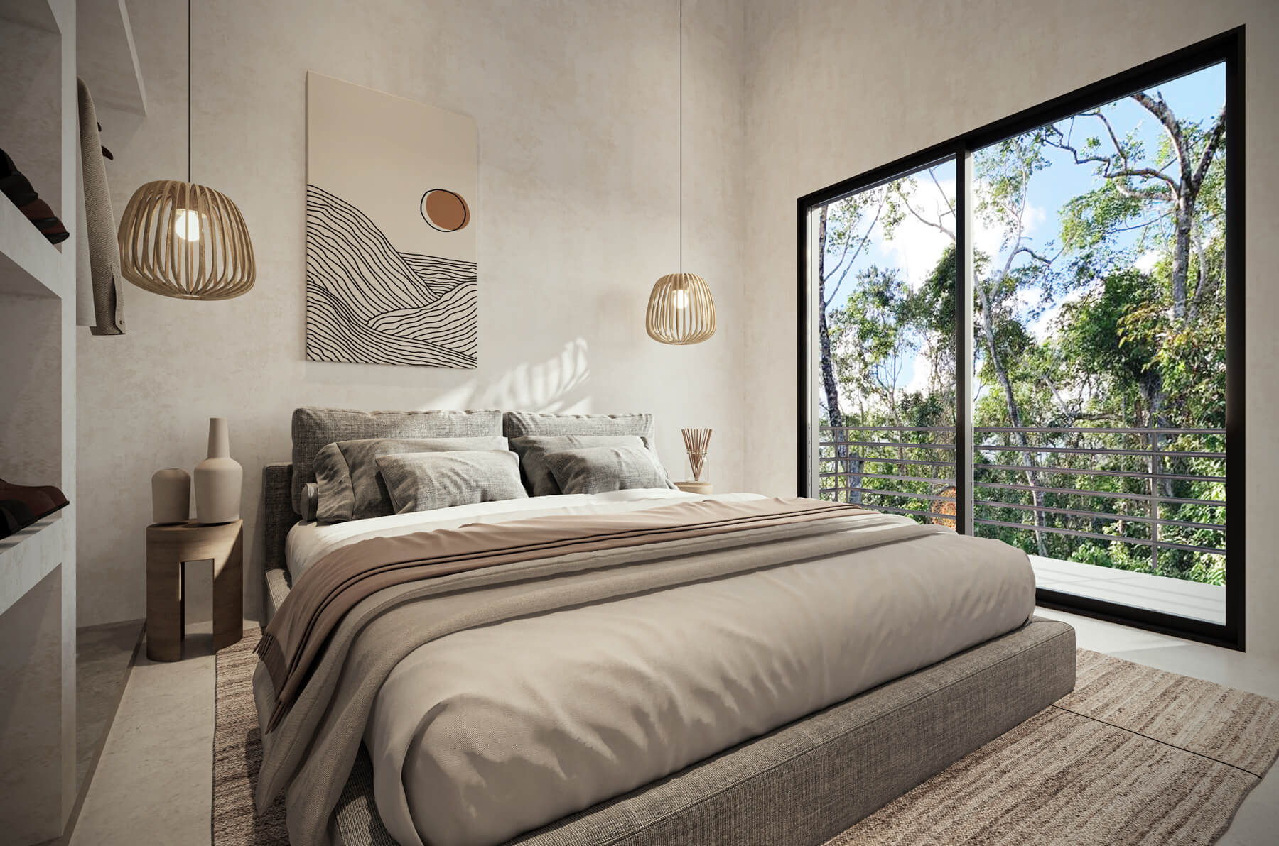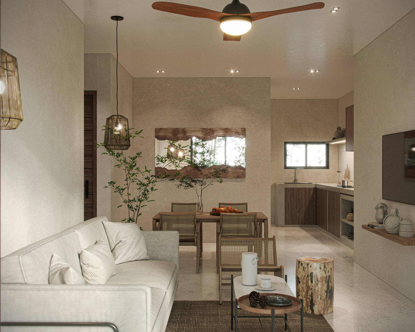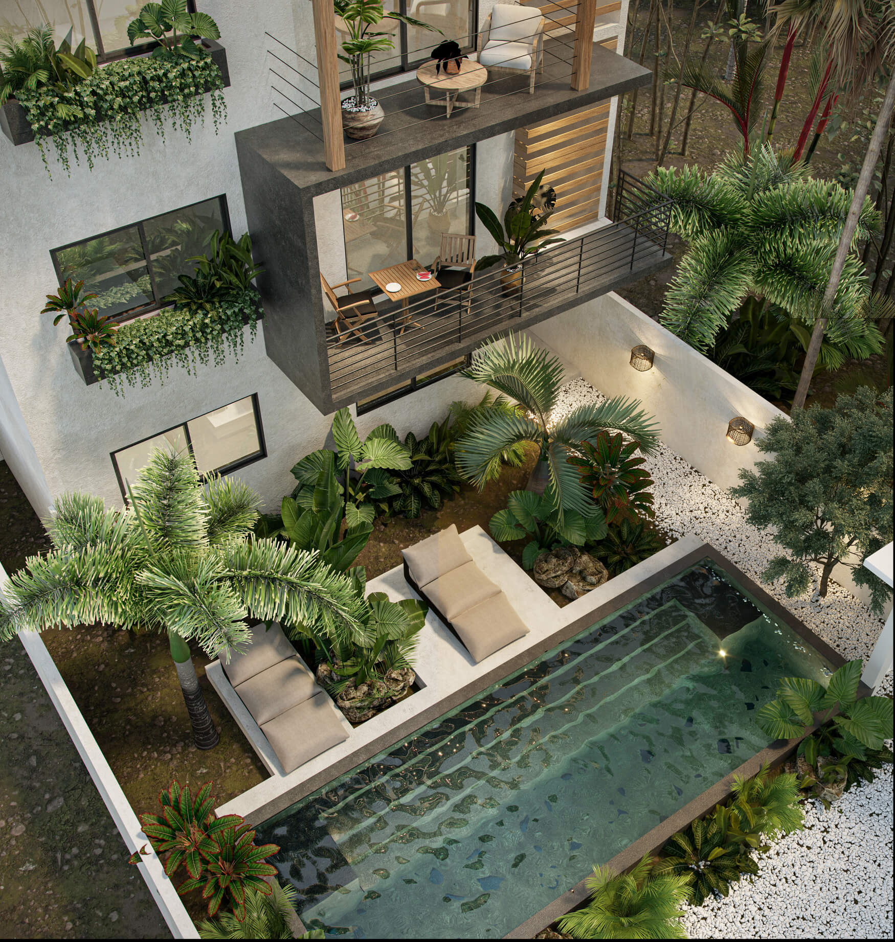 El condominio cuenta con solo tres unidades únicas, lo que garantiza una experiencia de vida privada e íntima. Cada unidad está rodeada de amplias áreas comunes que encarnan la tranquilidad y la serenidad, reflejando la calma del paisaje de Tulum.