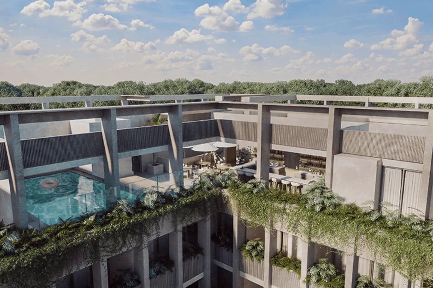 Además de Constelada, hay más nuevos condominios en venta en Tulum. Otras dos excelentes opciones incluyen Koro Tulum y Menesse Santuario.