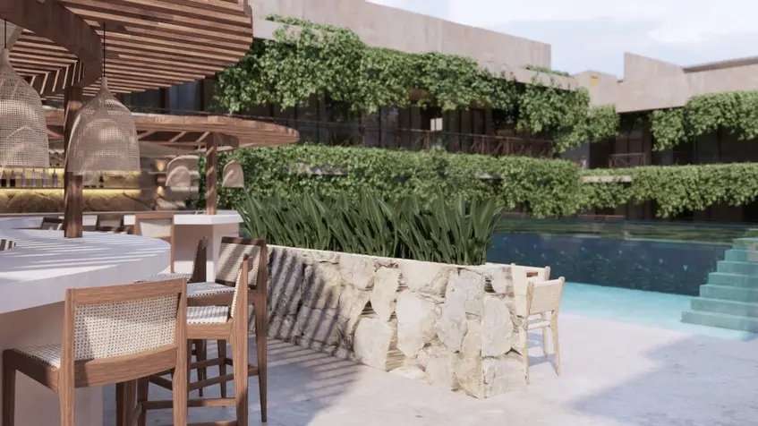 - Albercas, rooftop con bar y cenote artificial