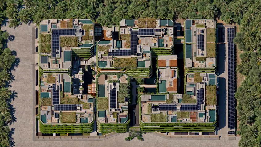 Cada unidad ofrece amplios espacios interiores, terrazas privadas y acceso a servicios compartidos. El diseño integra elementos interiores y exteriores, utilizando materiales naturales y geometría simple.