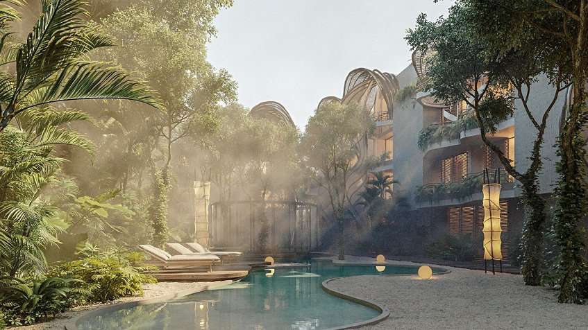 Selva Ámbar Tulum es un complejo de apartamentos cuidadosamente diseñado que celebra un estilo de vida Eco Chic, fusionando armoniosamente el lujo con un profundo respeto ecológico. Este proyecto está diseñado para mantener más del 60% de su vegetación original, destacando su compromiso con la sostenibilidad y el ecosistema natural.