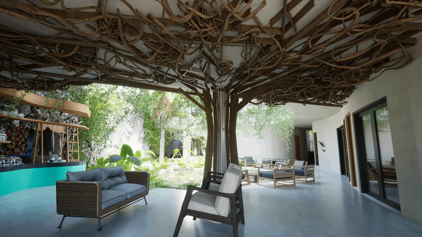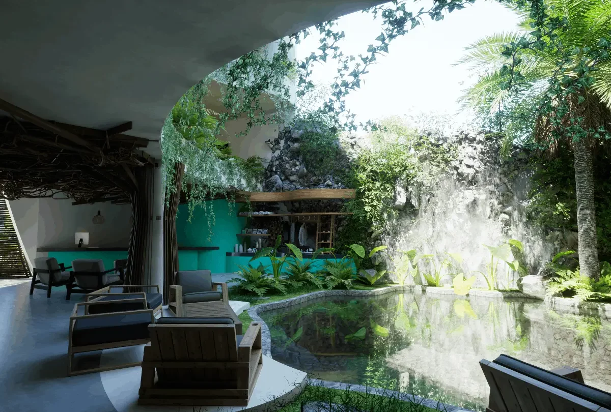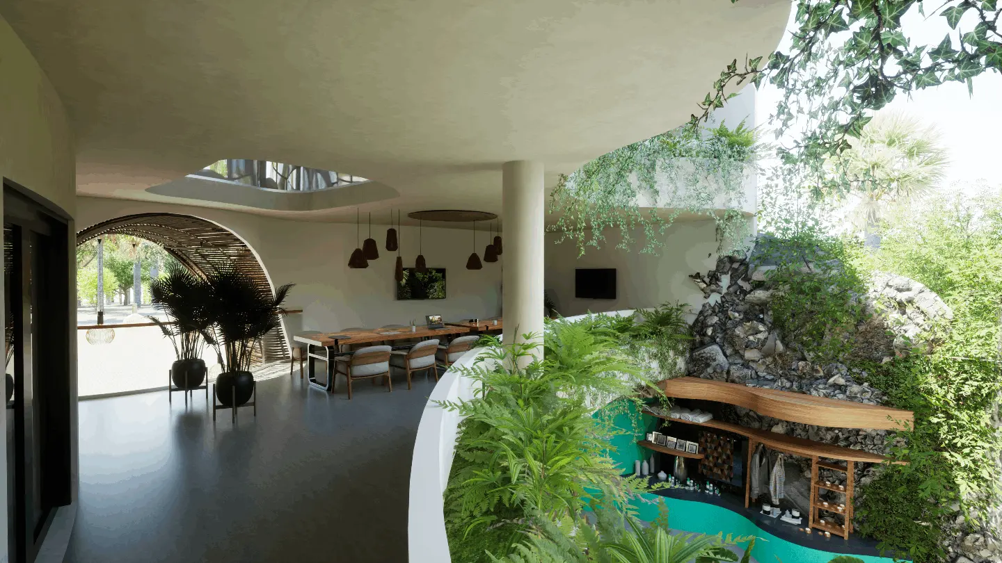 - Cenote artificial en planta baja