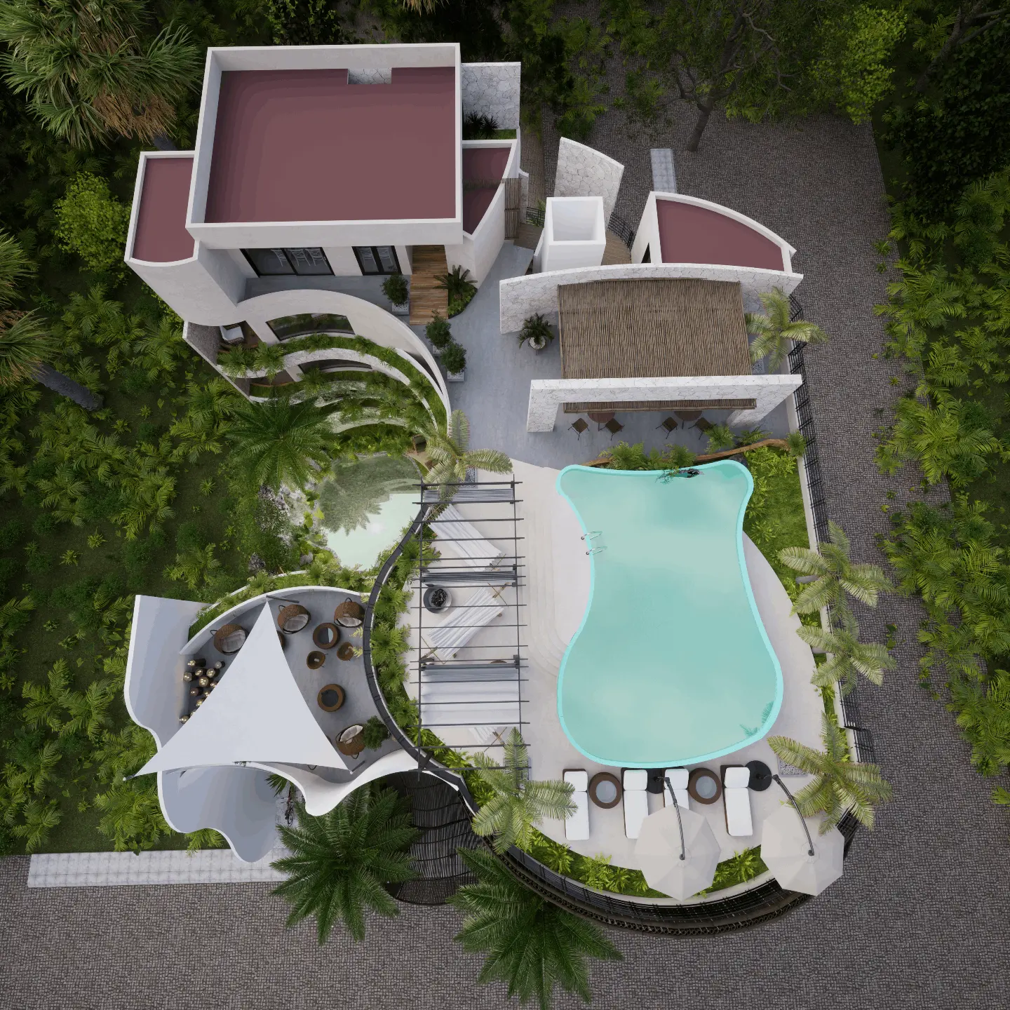 - Departamentos de 1 recámara (43–57 m²) – algunos con plunge pool o terraza