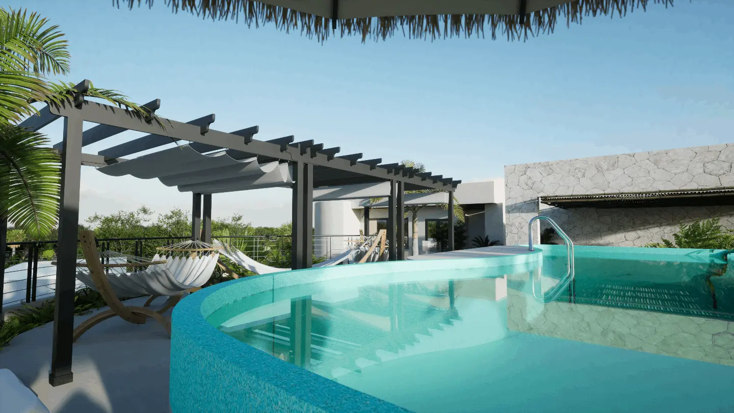 Tson Tulum es un desarrollo boutique ubicado en el corazón de la Región 15, a solo 9 minutos de la playa. Pensado para combinar comodidad, funcionalidad y rentabilidad, el proyecto incluye 20 departamentos totalmente amueblados en distintas tipologías, la mayoría con plunge pool privada y sistema lock-off.