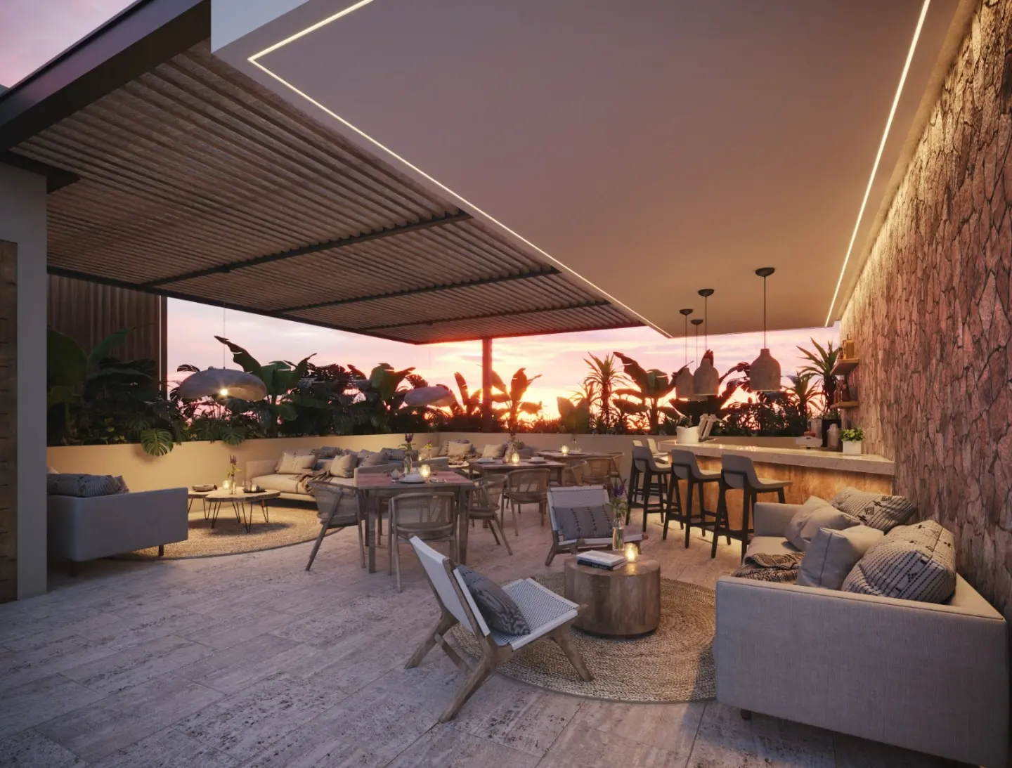 - Bar en terraza y áreas de rooftop