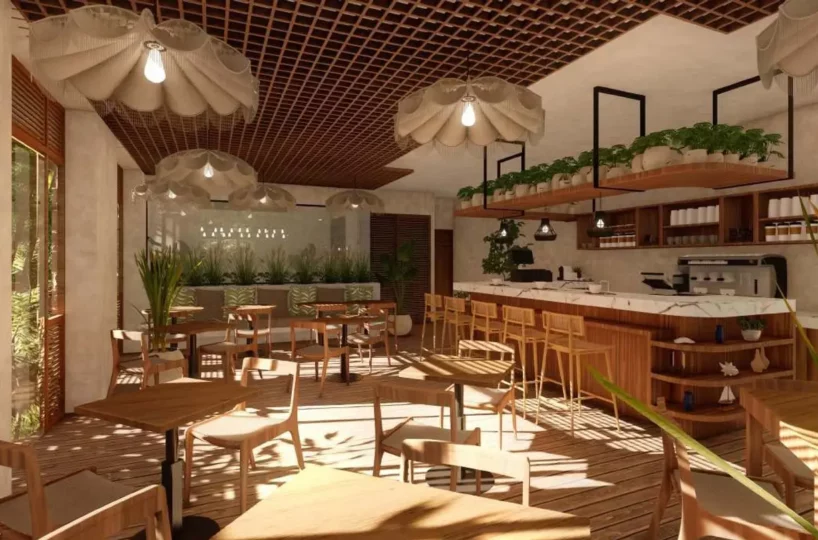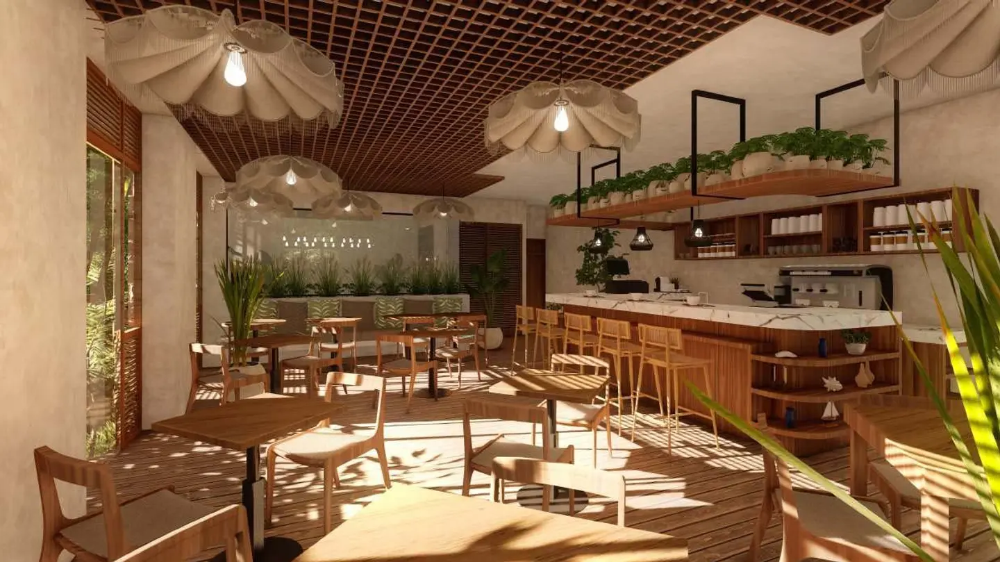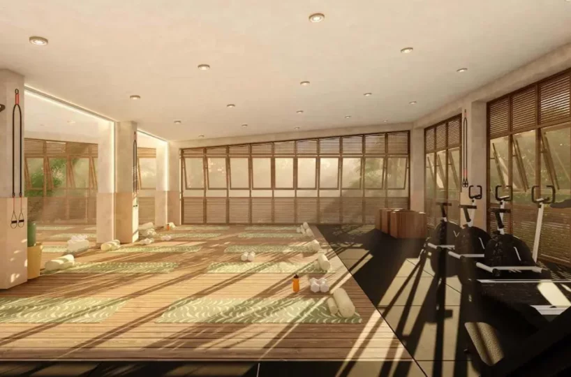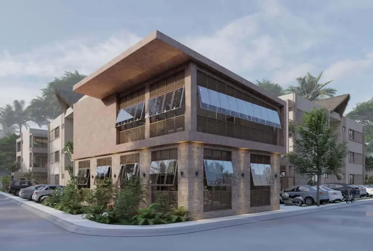 El plan maestro incluye 76 unidades y un espacio comercial distribuidos en cinco torres, cada una con tres niveles: Sian Ka’an, Viento Maya, Raíces, Armonía y Azul. El desarrollo cuenta además con recepción, gimnasio, área de yoga, alberca, solárium, zona de asadores y estacionamiento.