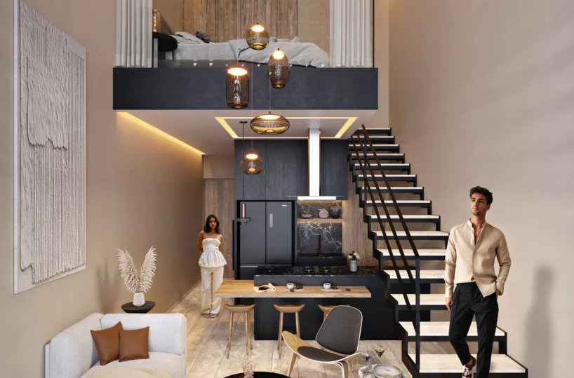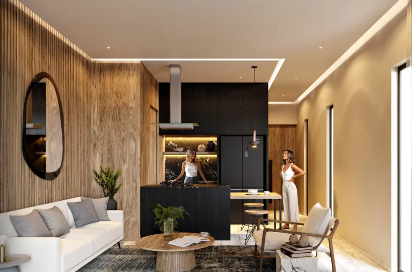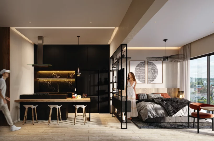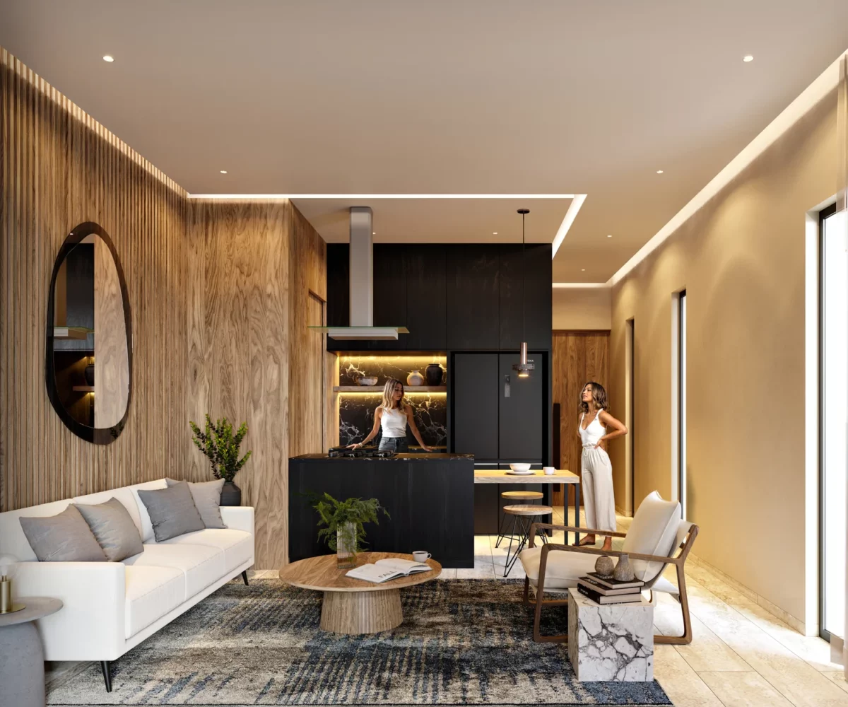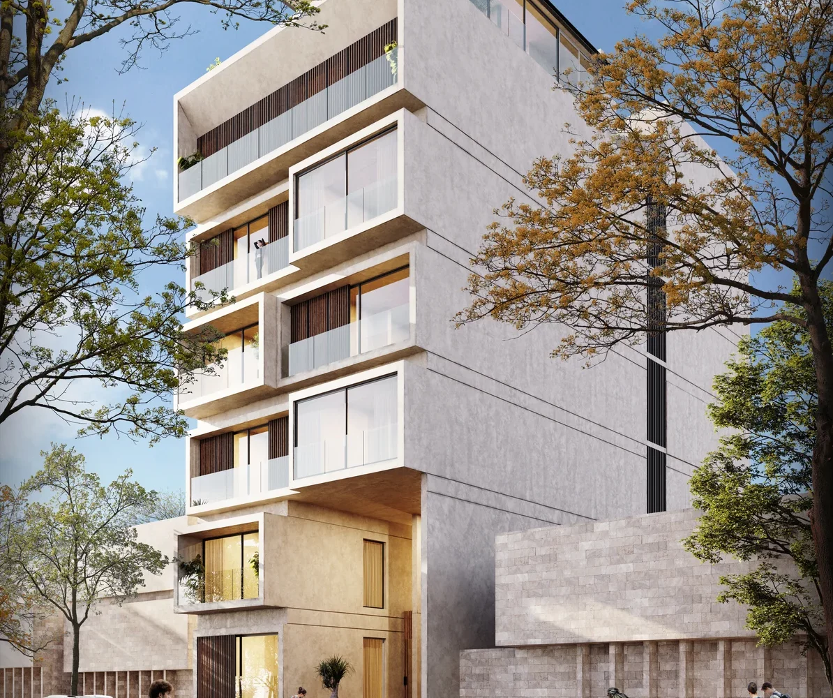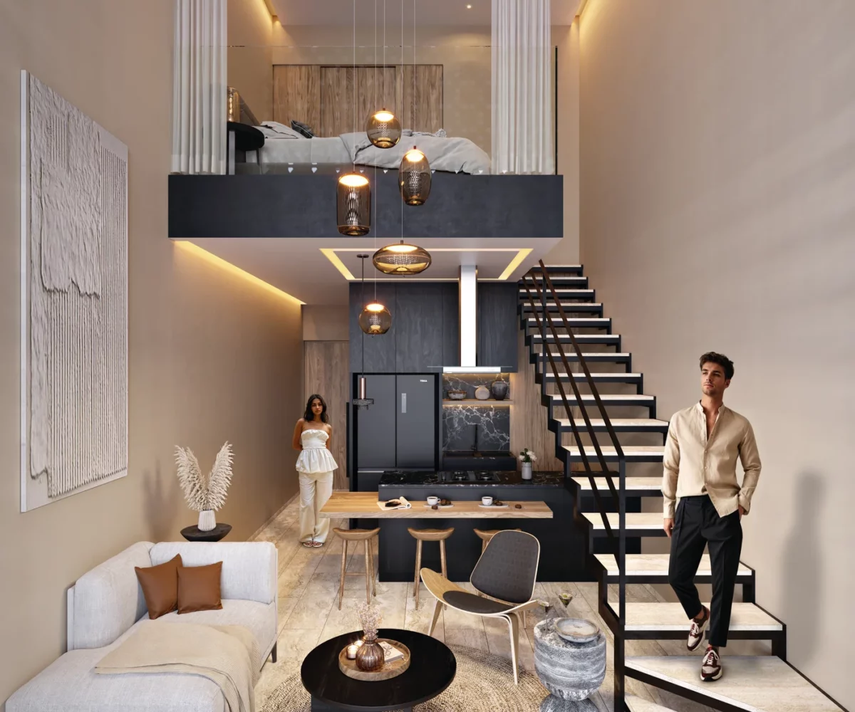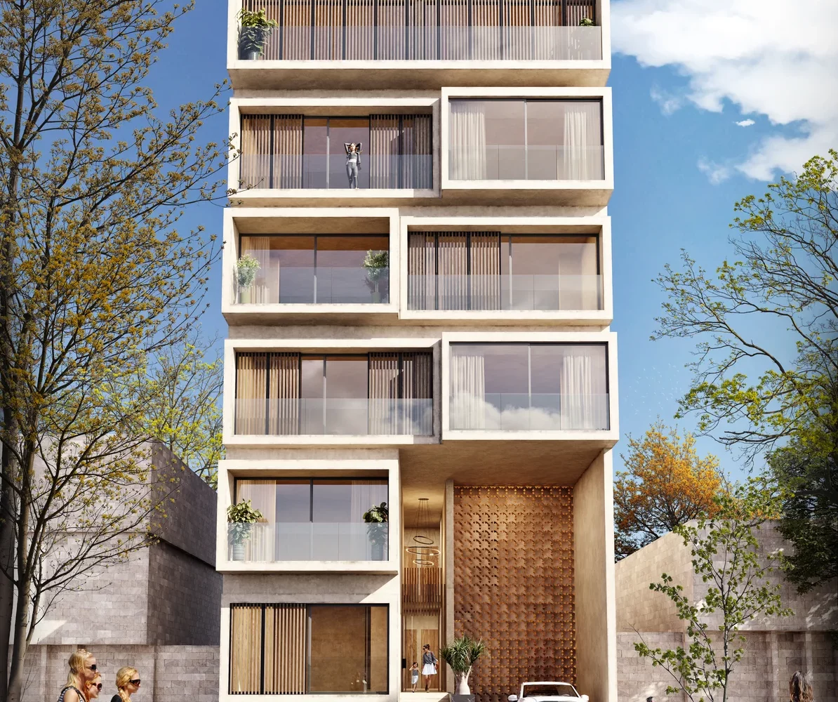 Belle Ăme is a six-level boutique tower with 21 units, located just minutes from the beach and Fifth Avenue in Playa del Carmen. The project combines premium design with practical layouts, offering studios, mezzanine units, 2-bedroom apartments, and penthouses.
