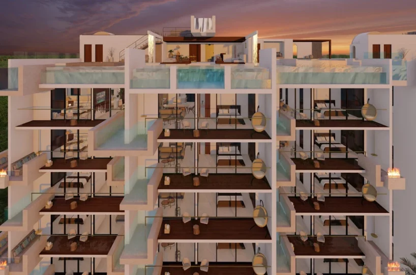 Existence is a boutique development of 36 ocean-facing units located just 60 meters from the Cozumel National Reef Park. Positioned between the Presidente Intercontinental and Fiesta Americana hotels, this project offers a rare blend of exclusivity, nature, and design near the beach and marina.