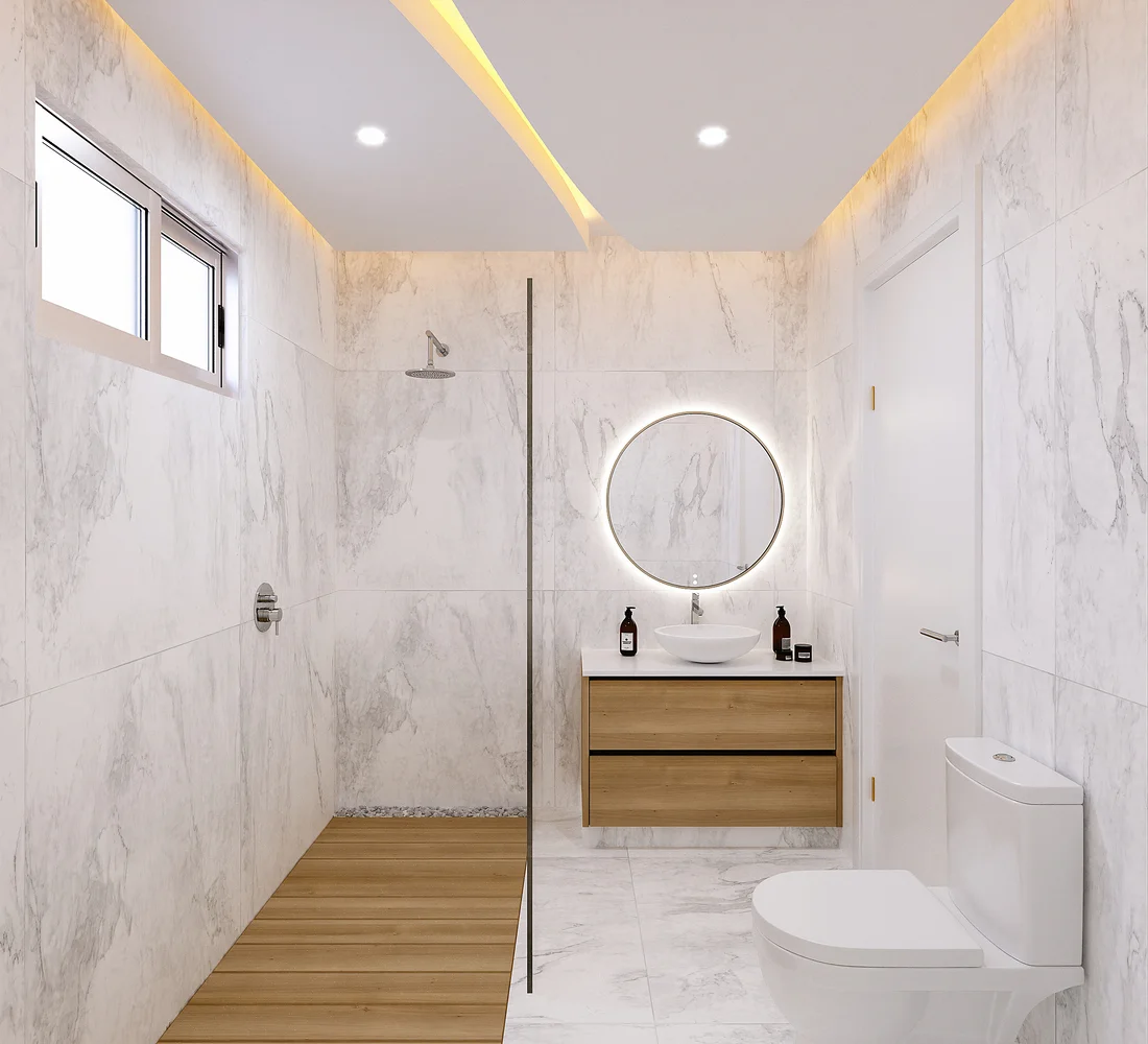 - Porcelain flooring throughout