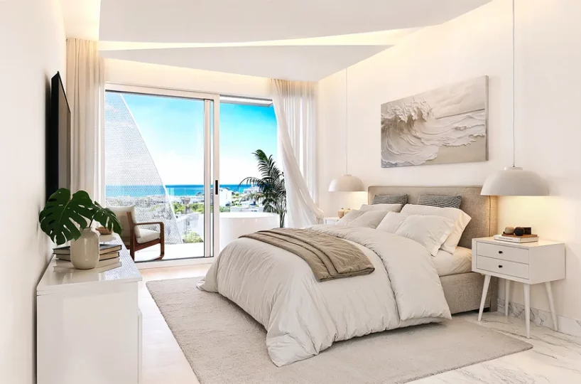 - 3-Bedroom Penthouses: 100.4 mÂČ total (87.3 mÂČ interior + 13.1 mÂČ terrace) with private jacuzzi and ocean view