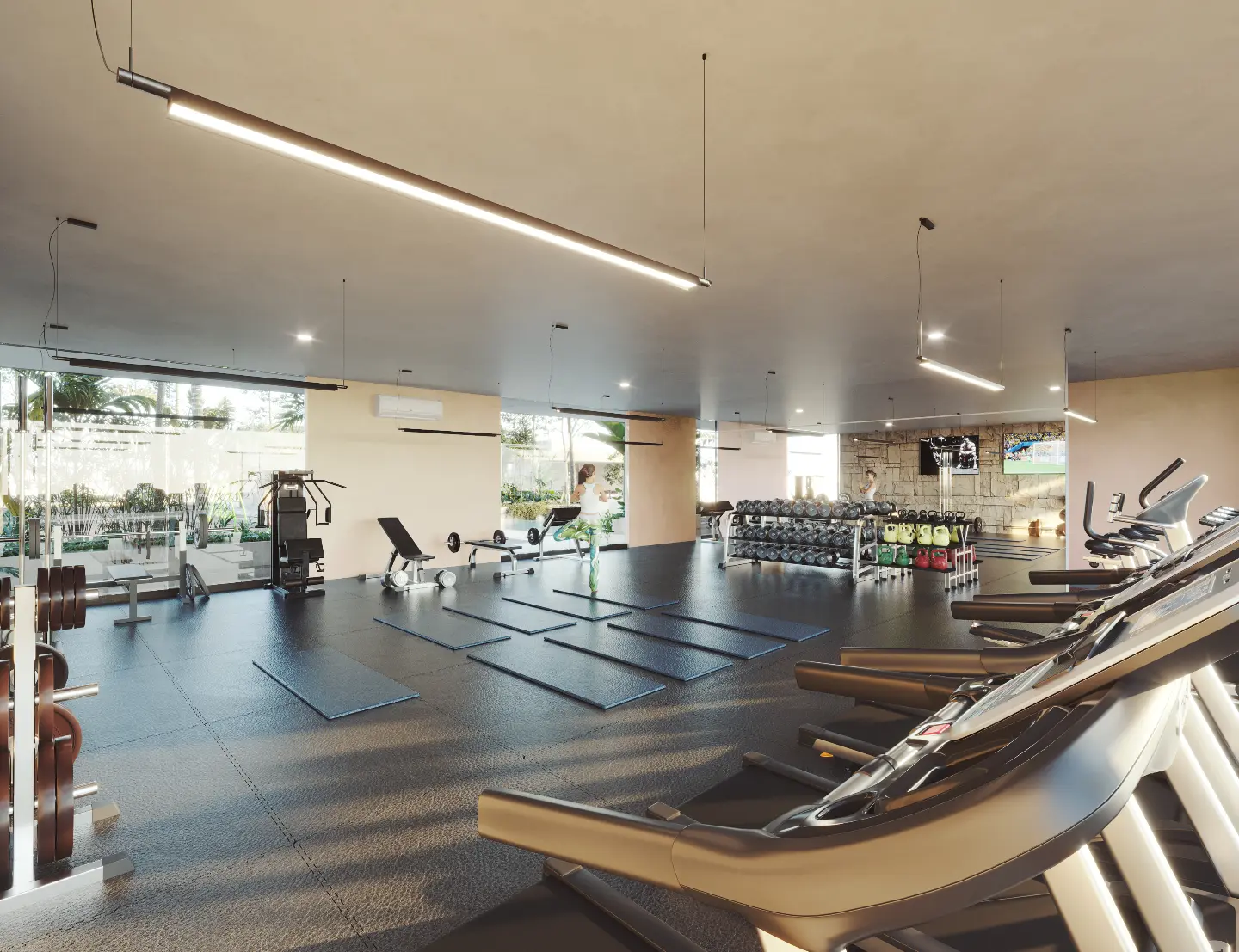 - A fully equipped gym to keep residents active.