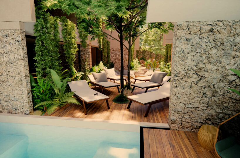 Naj Villas combines modern luxury with ecological features, making it an attractive option for those looking to invest in a sustainable yet comfortable lifestyle in Tulum. This development promises to be a serene retreat for homeowners looking for a blend of modern amenities and natural beauty.