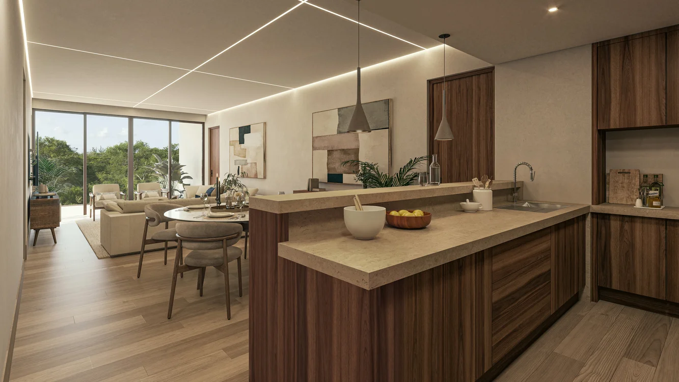 Oceanna Residences is a residential project located in the Diamond Zone of Playa del Carmen, near Playa Xcalacoco. The development features 3-bedroom apartments with large interior areas, service quarters, and access to resort-style amenities.