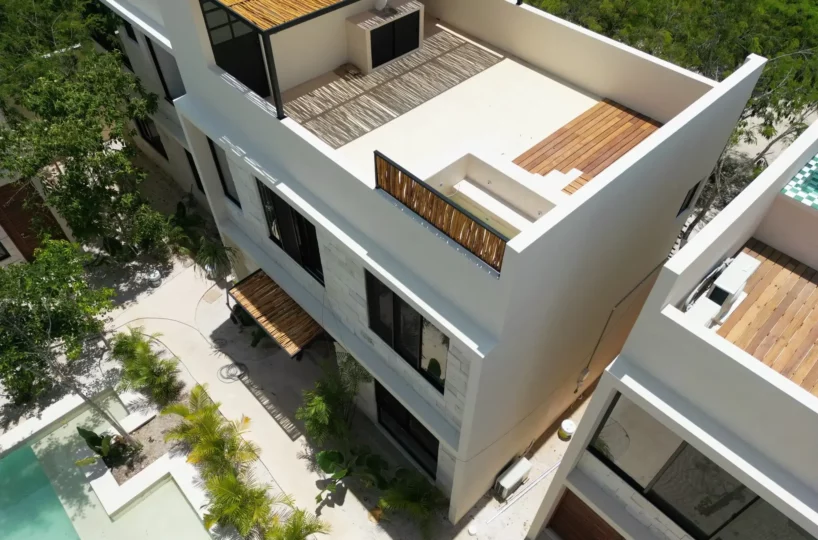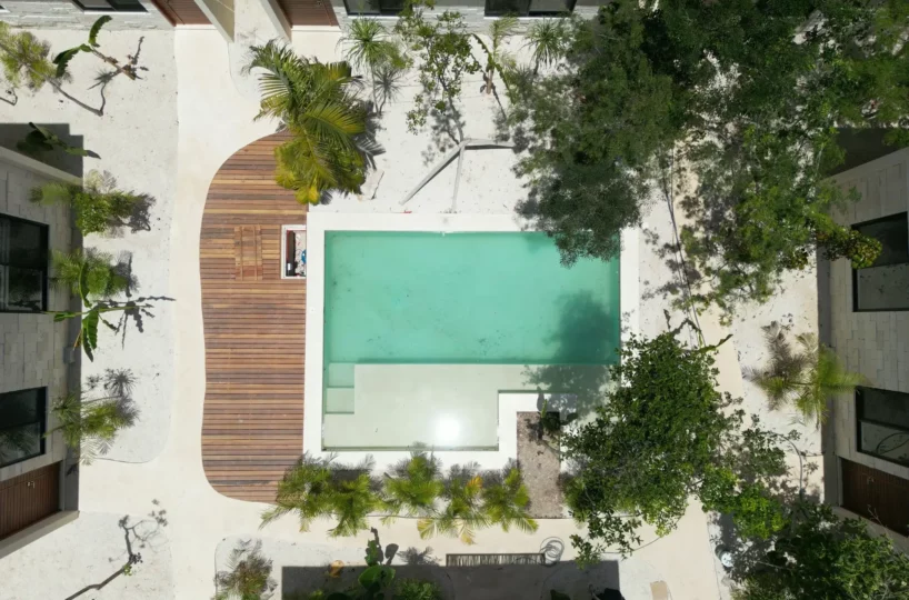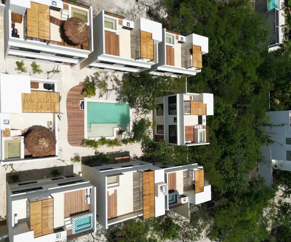 Poc ta Poc is a six-unit housing project located in Region 5, one of Tulum’s fastest-growing areas. Each home includes a private garden, rooftop, and pool, offering full privacy and outdoor living.