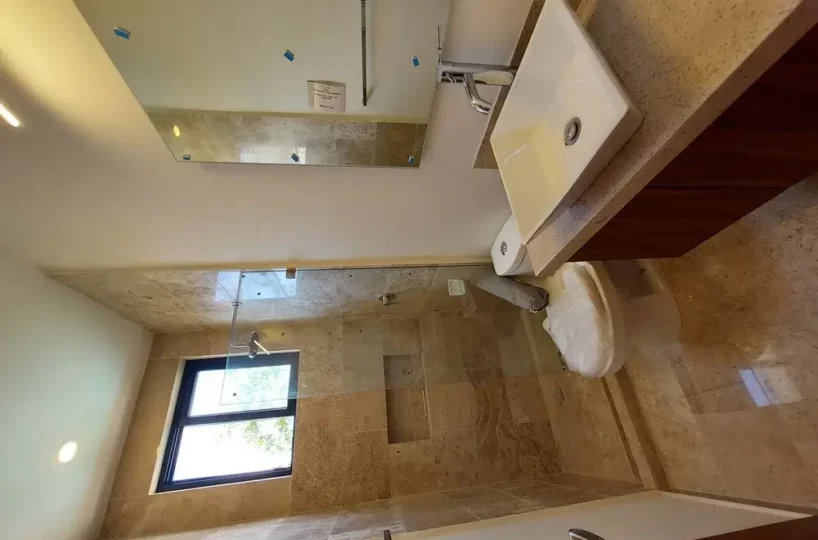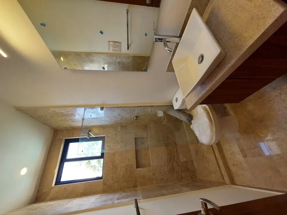 - Travertine marble floors