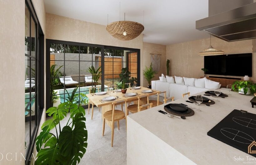 Soho Town is a residential development offering 95 private homes within a gated community in Tulum. Each house includes a private pool, rooftop option, and modern interiors built around sustainable practices.