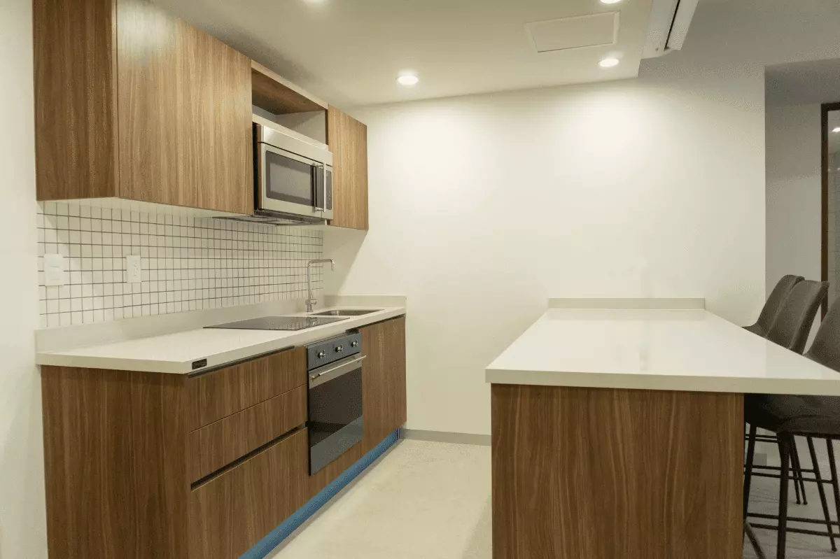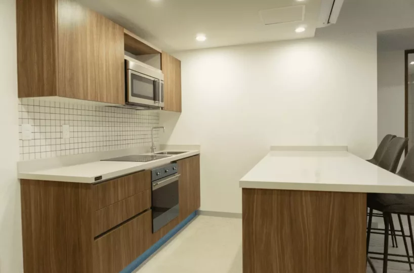 Urban Towers is designed to cater to a luxurious lifestyle, featuring sophisticated amenities. These include porcelain floors, Italian kitchens with quartz countertops, water-repellent closets, SMEG brand appliances, Helvex faucets, and an efficient Inverter AC system to ensure comfort throughout the year.