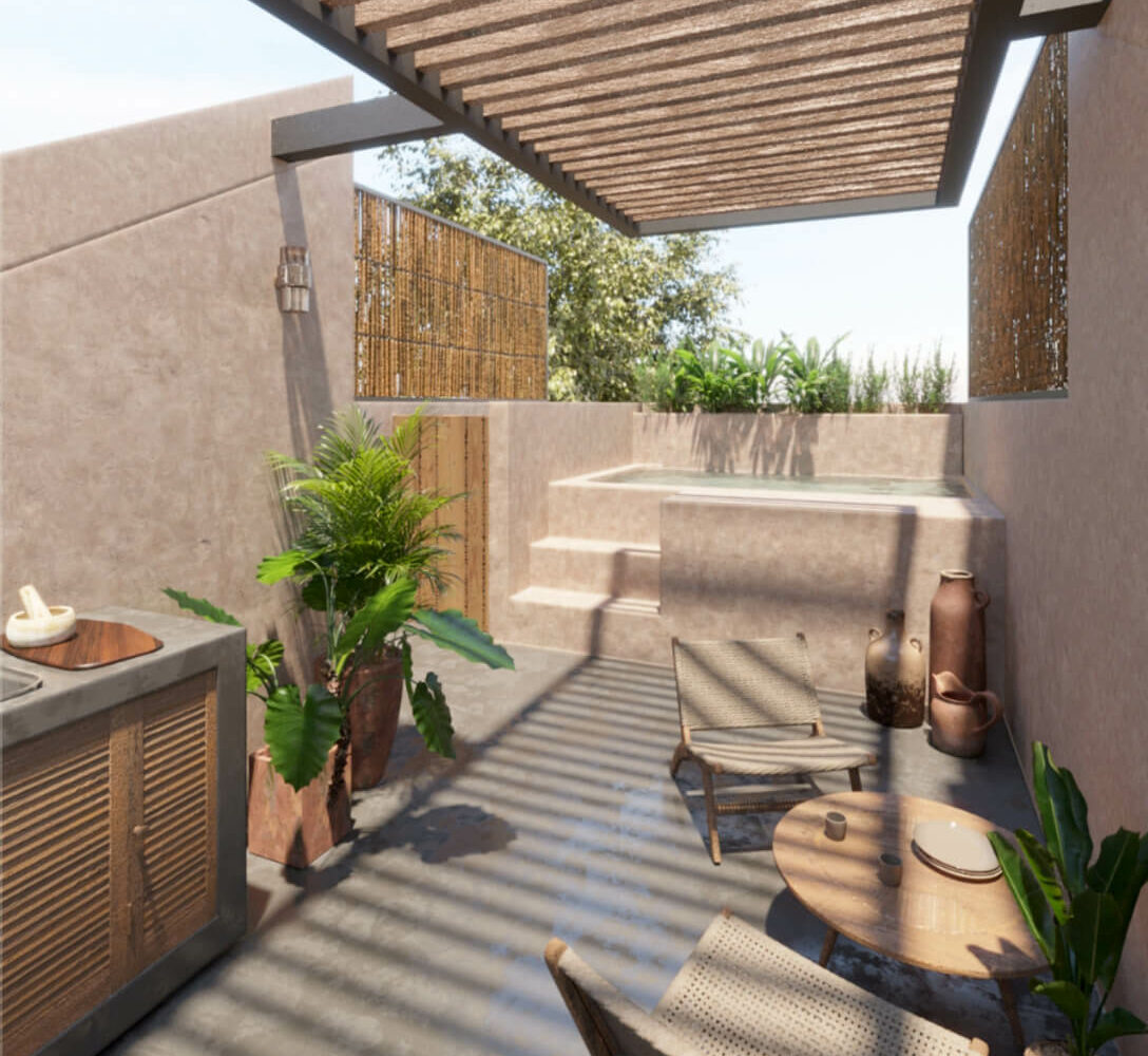 Úumbal is a unique townhome community located in the luxurious setting of Puerto Aventuras. Designed with Mediterranean and Mayan architectural influences, and a touch of Japanese minimalist balance, Úumbal offers a harmonious living environment tailored for tranquility and wellness.