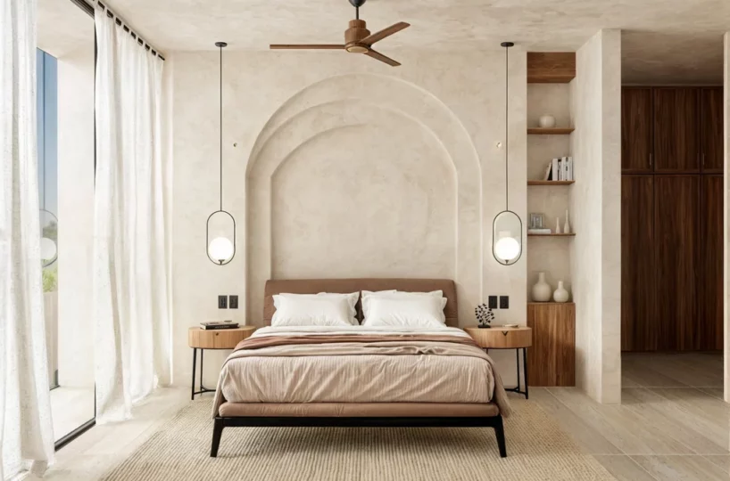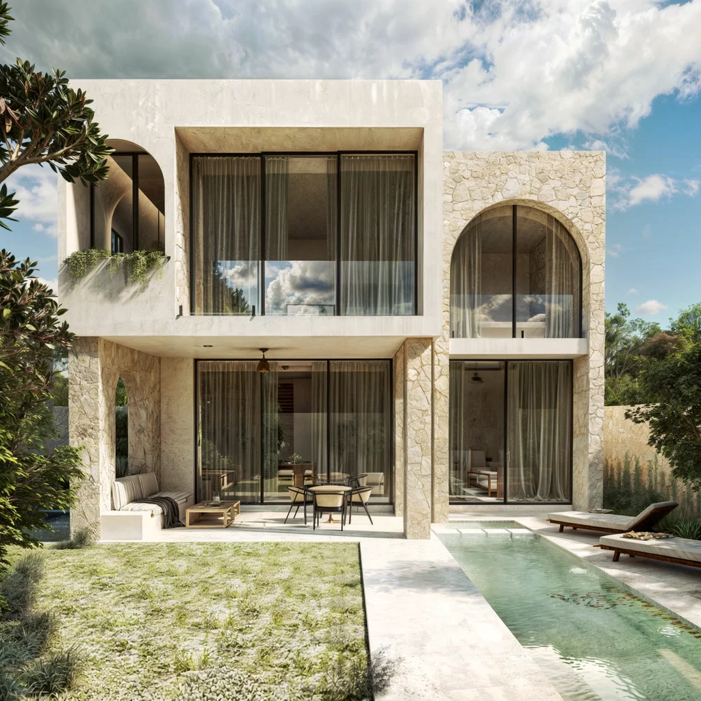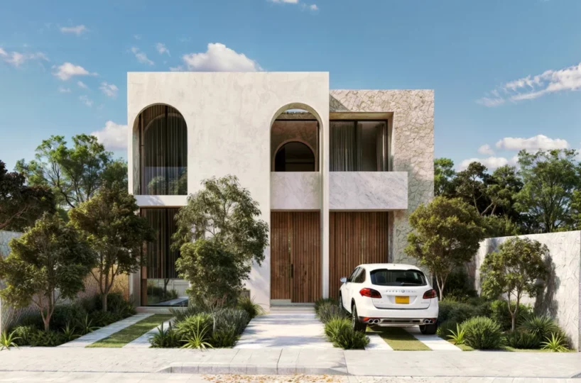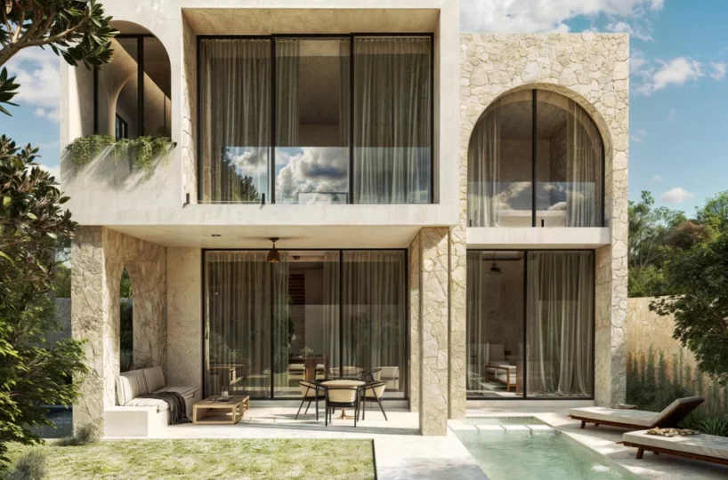 Villa Arcos is a standalone residence located in Aldea ZamĂĄ, Tulum. The home blends modern and pre-Hispanic architectural elements using regional materials such as stucco, stone, and hardwood. Delivery is scheduled for December 2024.