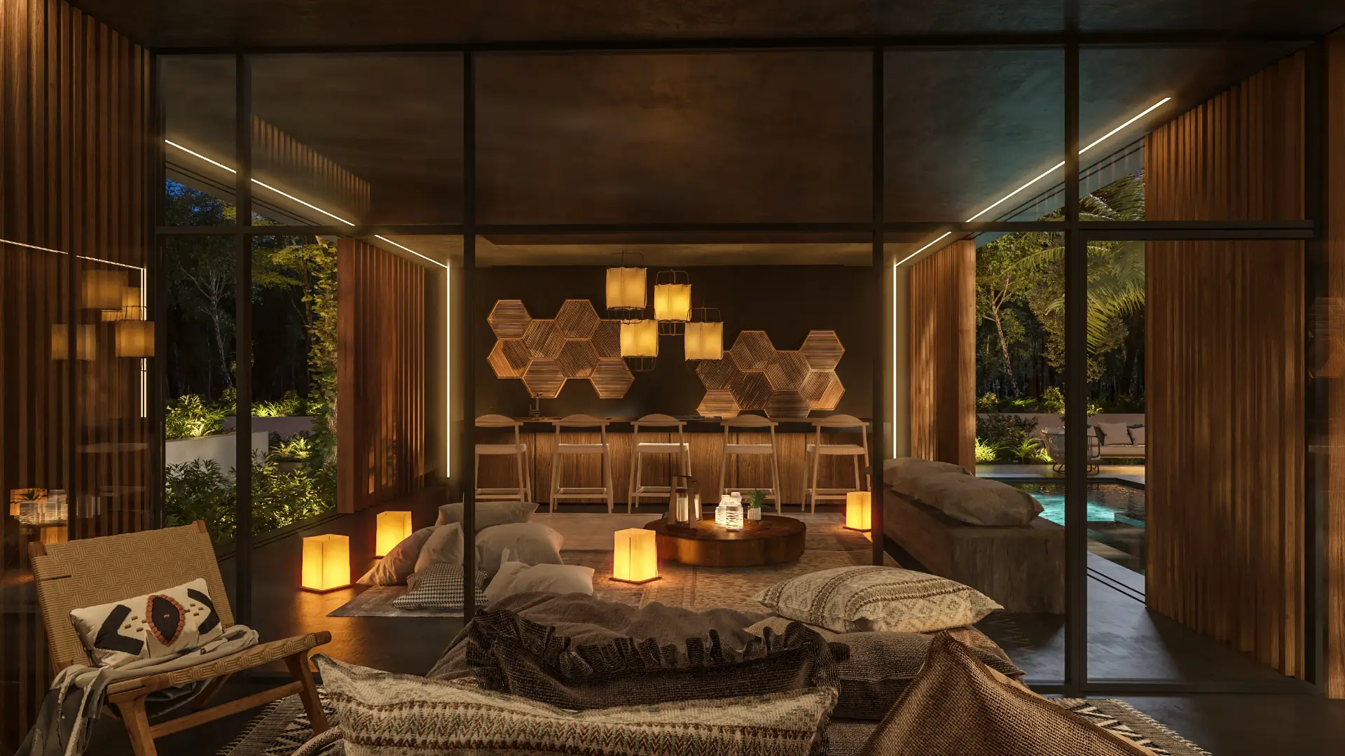 Uman-Ha is a residential development featuring of villas. Each unit is designed for independent living with private pools, rooftop terraces, and indoor-outdoor layouts that blend with the surrounding jungle.