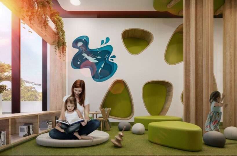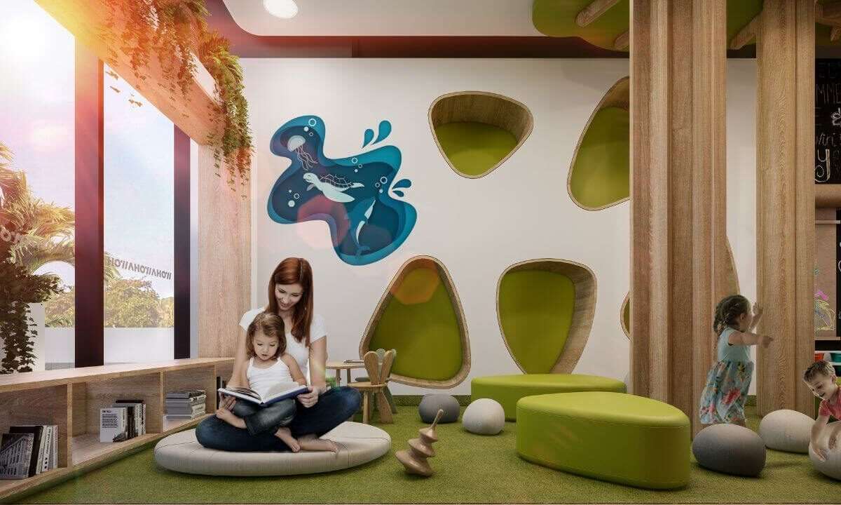 For wellness and fitness enthusiasts, the state-of-the-art gym and spa offer a sanctuary of health and relaxation. The pool is a centerpiece of leisure, promising endless days of sunbathing and relaxation, while the kids’ area ensures that younger residents have their own space for fun and play.